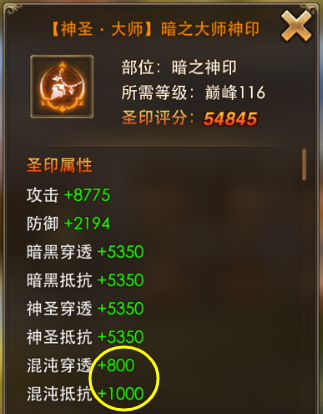消灭神圣小镇的怪物,获得的圣印将提升混沌穿透与抵抗属性;佩戴后可前往第三层混沌要塞挑战,获取属性更强大的圣印。