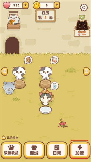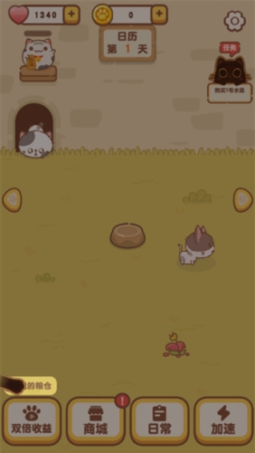 1、打开游戏后,首先点击商场购买食碗,用于喂食猫咪;