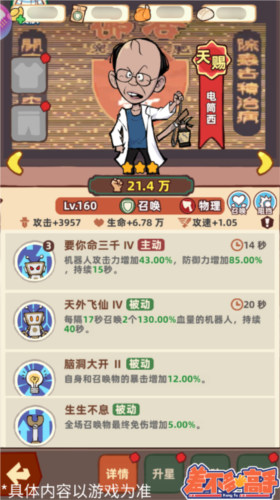 电筒西可召唤两个机器人进入战场,机器人能攻击敌人并吸引火力;开启主动技能后,能提升机器人的攻击与防御。其被动技能可增加召唤物的暴击率,并为全队召唤物提供减伤效果。与其他召唤伙伴不同,电筒西在承担伤害的同时也具备一定输出能力,适合在需要兼顾防御与攻击的关卡中使用。