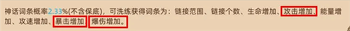 增伤娃娃:优先洗炼暴击率增加,其次为暴击伤害增加、攻击力增加。