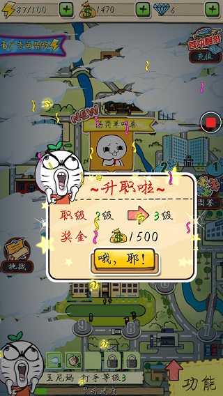 完成升级后将获得新技能,其余技能也会随着进程推进陆续获取。随后进入新关卡“没收手机”:小明上课玩手机被老师没收,不料手机竟是三星Note7,爆炸使老师变成爆炸头;老师发布报酬订单,玩家接单教训小明,告诫其勿在课堂玩手机。