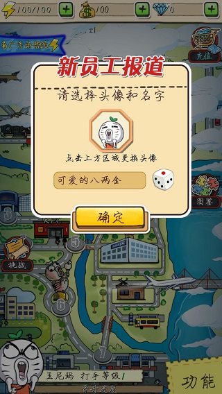 游戏初始会提示输入角色名称与头像,可自由设定或随机选择,确认后即可进入第一关。