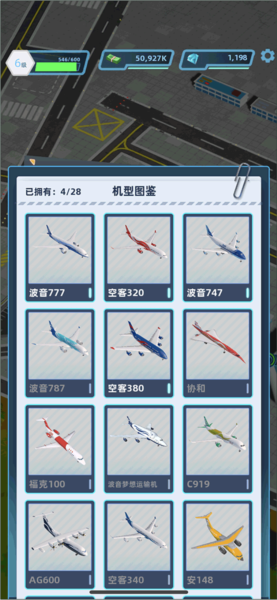 游戏设有飞机图鉴系统,收录共计28种机型。可通过完成任务、参与拍卖或接待特殊航班等方式收集;定期查看拍卖会刷新列表,有助于发现未收录的型号,完成全图鉴收藏。