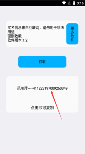 3、系统将显示实名认证信息,点击复制即可使用。