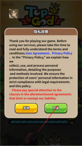 1、启动游戏后,首先点击同意选项进入。