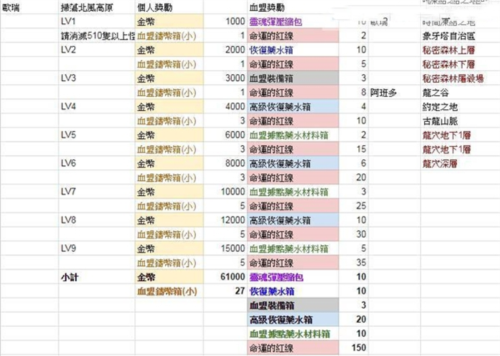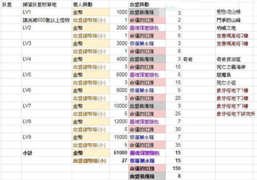 涉及地图包括欧瑞、阿班多地区;奖励在前级基础上增加高级恢复药水箱及血盟据点药水材料箱。