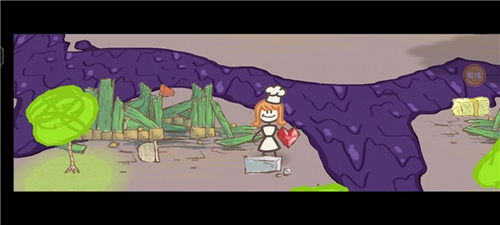 5、在高处获得画冰画笔;走到土坡顶部,在水面画冰;然后返回,冰面中间出现心形阴影;走向阴影进入洞穴,获取爱心后离开。