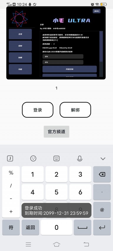 激活步骤简单,输入你买的卡密点登录;要解绑就点解绑按钮。
