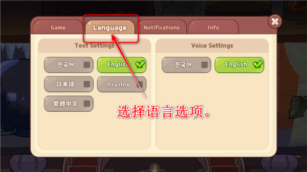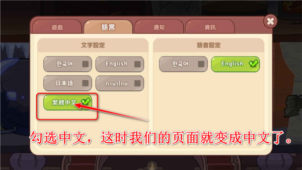 4、在语言列表中勾选中文,游戏界面便会立即切换为中文显示。