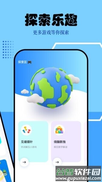 探索区用大卡片展示各种小游戏,配上简短说明和图标,几秒钟就能挑到喜欢的。里面有休闲解谜和闯关等类型,完美适合等车或午休时玩一玩。