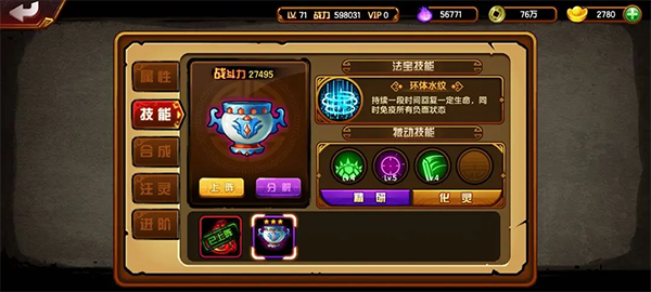 法宝技能需洗出攻速属性,否则后期关卡难度会增加。