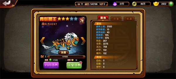 注意不要为熊山君升星,它无法进化;紫色坐骑可以升星,但同样不能进化。