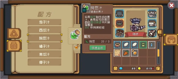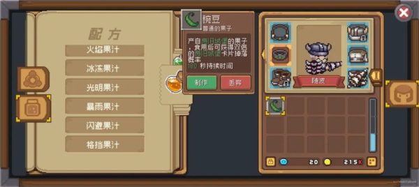其药水制作分为两类:一类是提升卡片掉落率的增益药水;另一类是提升人物属性的增益果汁。