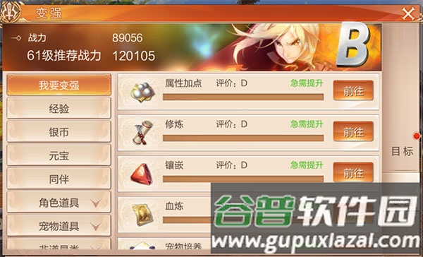 面对繁多的提升途径,游戏内设有整合的“变强”指引功能。该功能不仅提供各阶段推荐战力参考,还会对各个模块进行评分,并一键引导玩家前往评分较低的模块进行针对性提升。