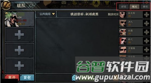 点击队伍左侧的【+】号展开邀请界面,可通过好友列表、随从列表或聊天频道招募队员。