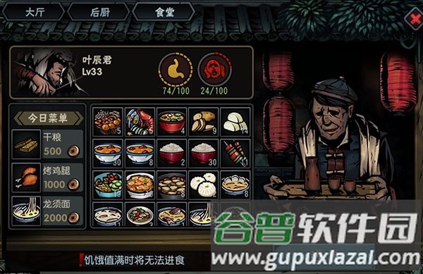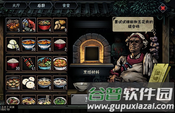 酒楼分为大厅、后厨与食堂三个区域。大厅主要用于饮酒减压,消除角色的折磨状态,提供三种酒品:农家粗酿降低20点压力,甘泉美酒降低50点压力,招牌宴席降低100点压力,每次使用均对全队生效。玩家可按需选择不同档次的酒品,高品质酒减压效果更佳,价格也相应更高。