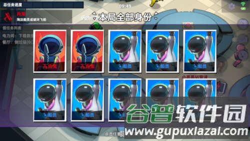 3、进入对局后,你将与其他9名玩家同场竞技,每人会随机获得一个身份;船员的目标是修复飞船并找出内鬼,而内鬼则需要破坏飞船并袭击所有船员。