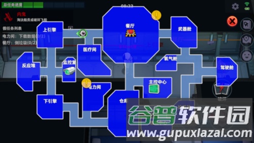 4、反应堆破坏;反应堆必须由两名玩家同时修复,两端各有一个手动扫描仪需要同步操作;它同样设有倒计时,归零则内鬼获胜;在剩余玩家不多时,破坏反应堆能有效制造压力,或将尸体隔离在右侧区域。
