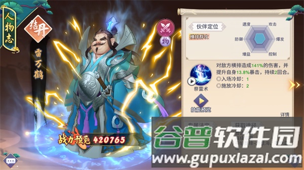 搭配详解:雷万鹤能在造成伤害后提高自身暴击率,搭配金蚨子母刃可同时提升攻击力,使输出效果进一步增强。