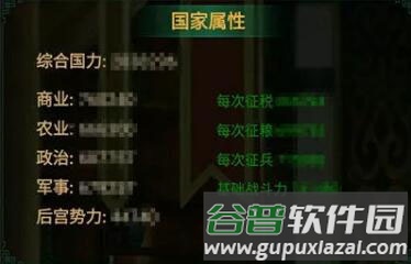 1、游戏中的核心关注点是国力提升。综合国力由商业、农业、政治、军事四项属性及后宫势力共同构成;提升国力需从这些方面着手。