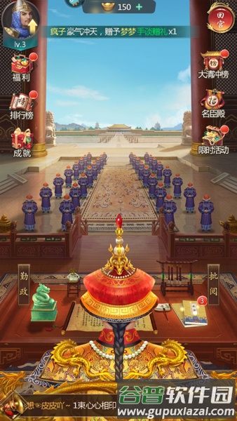 1、金銮殿每日会更新并发布日常任务,记得按时领取奖励。