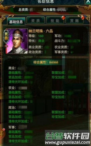 5、在相同等级下,资质更高的大臣能获得更多属性值。