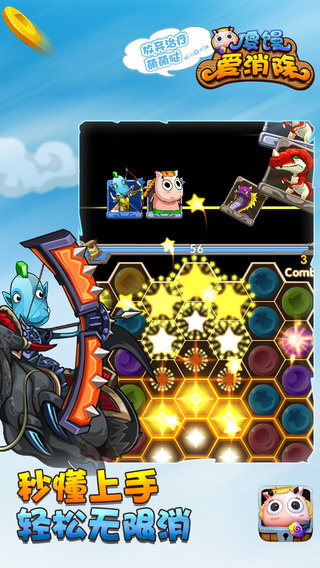 傻馒爱消除是乐动卓越游戏公司发行的首款新型休闲游戏,以我叫MT动画为原型,把连线消除和英雄养成两种玩法结合到一起,打造出体验独特的消除手游。玩家把屏幕上超过3个相同类别的宝石相连就可以发动攻击,多样的道具、不同的英雄技能可以帮助玩家勇闯难关,击败各类凶狠的大BOSS。