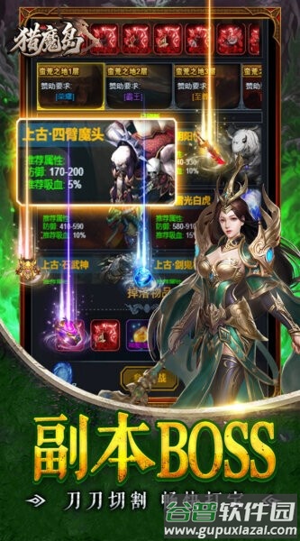 玩家在猎魔岛的世界里,可以解锁各类神秘地图,挑战不同难度的副本BOSS,靠装备升级、技能强化和角色成长逐步拉高战斗力。经过持续的战斗和成长,最终能跻身猎魔大陆顶级强者的行列。