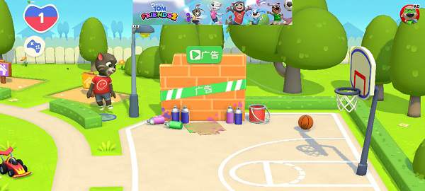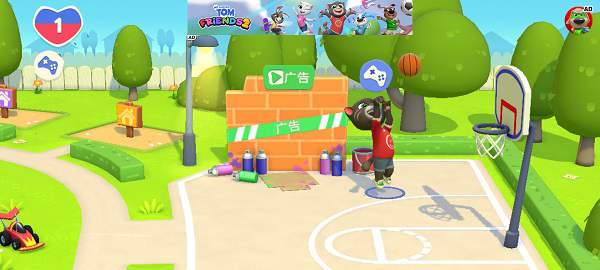 2、如果你想让汤姆猫体验打篮球的玩法,只需要点击对应的篮球场地位置,他就会自动前往开启游玩;